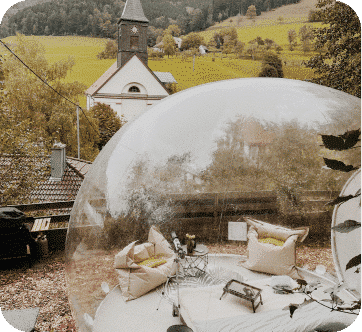 Willkommen in einer Welt, in der Natur auf Luxus trifft – willkommen bei Book a Bubble! Egal, ob du einen romantischen Ausflug oder einen einzigartigen Familienurlaub planst, unsere Bubble Hotels bieten dir das ultimative Glamping-Erlebnis. An den schönsten Orten in Deutschland und Frankreich gelegen, sind unsere Zelte so konzipiert, dass sie dich die Schönheit der Natur hautnah erleben lassen und dir gleichzeitig den Komfort eines hochwertigen Hotels bieten. Stell dir vor, du schläfst unter einem Sternenhimmel ein und wachst zu den sanften Klängen der Natur auf – und das alles in deinem gemütlichen, gut ausgestatteten Tent.